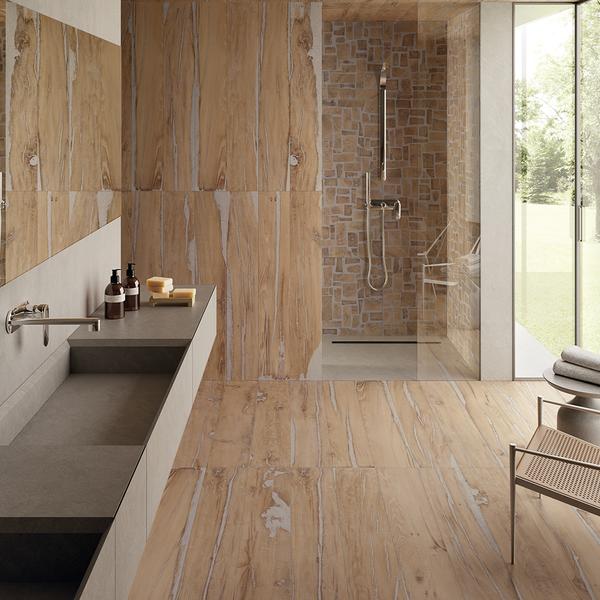 Fliesenkollektion in der Optik des Natursteins Pierre de Bourgogne.