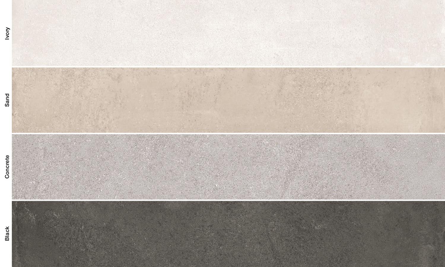 Verfügbar in vier Trendfarben von Avorio bis Nero, kommt Be-Square besonders eindrucksvoll in den Platten 120x278 und 120x120 zur Geltung. Das nahtlose, einheitliche Flächenbild eignet sich perfekt für urbane Raumwelten und Lofts. Auch in der Materialstärke 20mm verfügbar. Abgerundet werden die Dekorationen von Be-Square by Emilceramica durch zweifarbige Fliesen im Format 30x30 in den Kombinationen Concrete/Black und Ivory/Sand, die ein reizvolles Wechselspiel von geometrischen Kreis- und Quadratformen erzeugen. Die abwechselnde Verlegung dieser Fliesen ermöglicht dekorative Wandgestaltungen mit lebendiger Ausstrahlung.