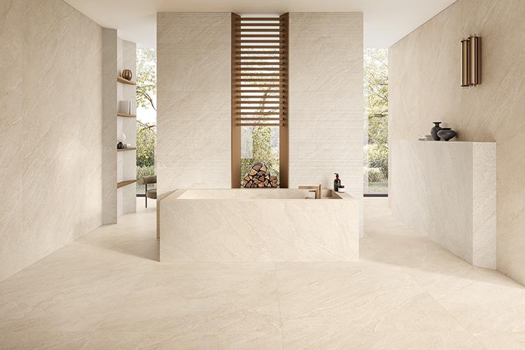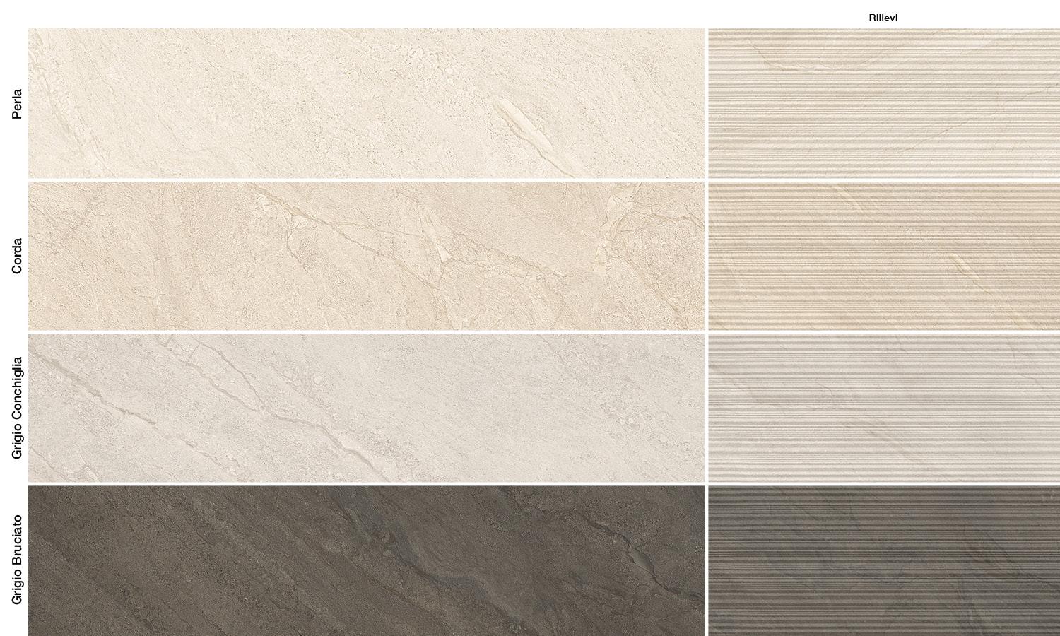 Das Ergebnis ist eine Kollektion von Keramikoberflächen mit sehr strukturiertem Charakter, welche die Faszination von Marmor mit der Erlesenheit von Stein verbinden. Die Textur ist reichhaltig, tief, nahezu pulsierend: Sie offenbart unregelmäßige Linien und zarte Kontraste, wobei die immer unterschiedlichen Äderungen wie natürliche, geschmeidige Fasern wirken. Pietra di Orosei eignet sich optimal für moderne Räume, wenn ein Gleichgewicht zwischen Raffinesse und authentischen Materialien gewünscht ist. Das Dekor Rilievi für Pietra di Orosei erzeugt eine tiefe und konkrete Dreidimensionalität. Die Bearbeitung erfolgt bis zu einer Tiefe von 5 mm und schafft damit ausdrucksstarke, markante Strukturen, die die Stofflichkeit der Oberfläche hervorheben. Mit diesem Dekor lassen sich skulpturale Wände schaffen, wo Licht und Schatten miteinander interagieren und den mineralischen Charakter der Kollektion unterstreichen.