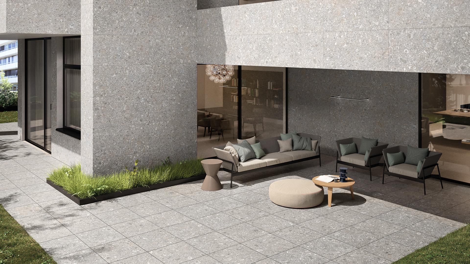 Feinsteinzeug ist die richtige Lösung, um eine Terrasse in ein neues Licht zu stellen, da es optische Vorteile mit bewährter technischer Leistung verbindet. Es eignet sich dank der großen Auswahl von Platten und Finishs für die unterschiedlichsten architektonischen Kontexte und auch für den Außenbereich, da es auch unter Witterungseinflüssen optimale Leistungen garantiert. Für ein optimales Ergebnis sollten jedoch bei der Wahl einer Außenverkleidung einige Tipps beachtet werden. Die erste Frage, die man sich stellen muss, bezieht sich auf die optische Atmosphäre, die man sucht. Die Terrasse kann den Stil und die visuelle Dimension des Innenraums aufgreifen oder sich als eigenständige Einheit mit eigenen Merkmalen etablieren. Beide Lösungen bieten zahlreiche Möglichkeiten der Gestaltung. Was die Oberflächenbeschaffenheiten anbelangt, eignet sich Feinsteinzeug mit Natursteinoptik nicht nur für den Innen-, sondern ausgezeichnet auch für den Außenbereich. Drittens muss die Terrasse bei der Verlegung sauber, frei von Verunreinigungen, eben und mit einem stabilen Untergrund versehen sein. Feinsteinzeugbeläge haben den großen Vorteil, dass sie dank ihrer raffinierten und sehr natürlichen Verlegung die Oberflächen vereinheitlichen und definieren.