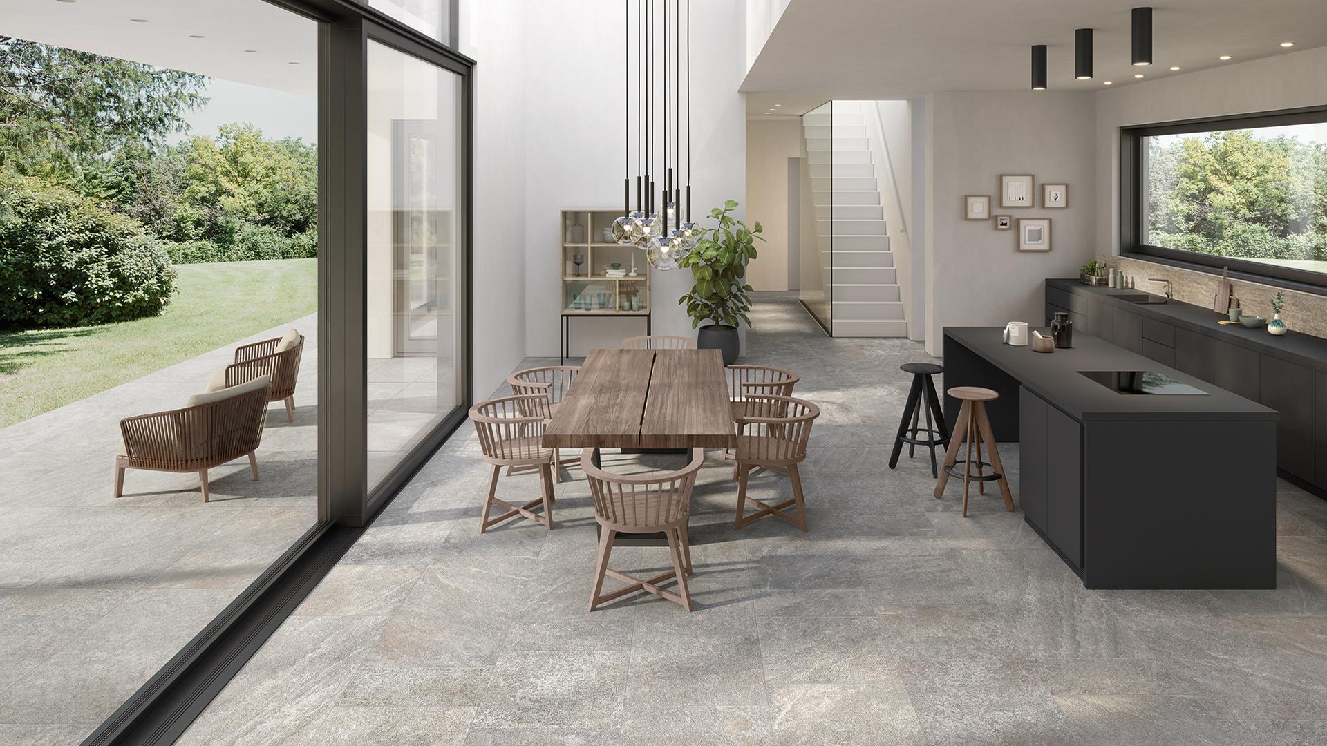 Der Stein und das Wasser gehen eine unschlagbare Verbindung ein, doch das Feuer ist erst der Funke, der die Küche zu einem Ort gewagter Kombinationen und Experimente für jeden Geschmack macht. Die natursteinähnlichen Bodenbeläge in der Küche strahlen Persönlichkeit und Natürlichkeit aus und eignen sich für einzigartige Design-Kombinationen. Der Stein tritt in einen Dialog mit dem Feuer, mit der Idee von Wärme, die auf die gesamte Umgebung ausstrahlt und ihr Eleganz und einen modernen Look schenkt. Sie sind auf der Suche nach modernen Bodenbelägen in Steinoptik für die Küche? Im Katalog Landscape by Emilceramica finden Sie jede Menge Inspirationen. Die Kollektion ist dem Kalkstein gewidmet, den sie als Verbindungselement zwischen den erhabensten Erscheinungsformen – die in den Fassaden der Kathedralen und Städtchen in Italien verewigt wurden – und den modernsten Designtrends versteht. Die Fliesen ahmen die Natürlichkeit des Sedimentgesteins nach, indem sie die Äderungen, die Nuancen innerhalb einer Farbpalette, die diesem Material ureigene Leuchtkraft hervorheben. Eine Authentizität, die dem Raum eine schlichte Eleganz verleiht, mit einer technischen Ausstrahlung, die durch die SilkTech-Technologie perfektioniert wurde: eine vollkommen rutschfeste und zugleich bei Berührung weiche, seidige Oberfläche. Die Farben Avorio, Sabbia, Cenere und Antracite sind auch in der Ausführung mit dem Dekor Rigato erhältlich – eine natürliche Erweiterung der unzähligen kreativen Möglichkeiten, die die Fliesen in Steinoptik bieten.