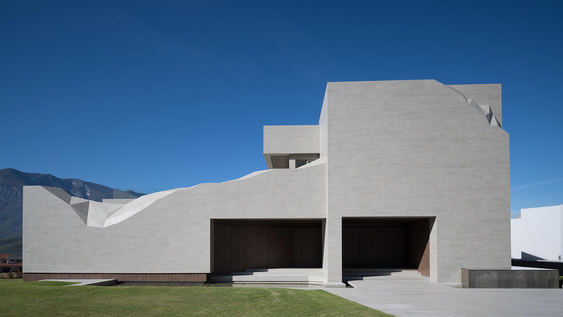 Bei diesem Projekt kam die Kollektion Q-Stone di Provenza in zwei verschiedenen Bereichen zum Einsatz. Die Fassade, deren kantig-zerklüftete Form effektvoll an die umgebende Bergkulisse anspielt, wurde mit 13.000 Quadratfuß (ca. 1207 qm) dieser Keramik in Quarzit-Optik bekleidet.
