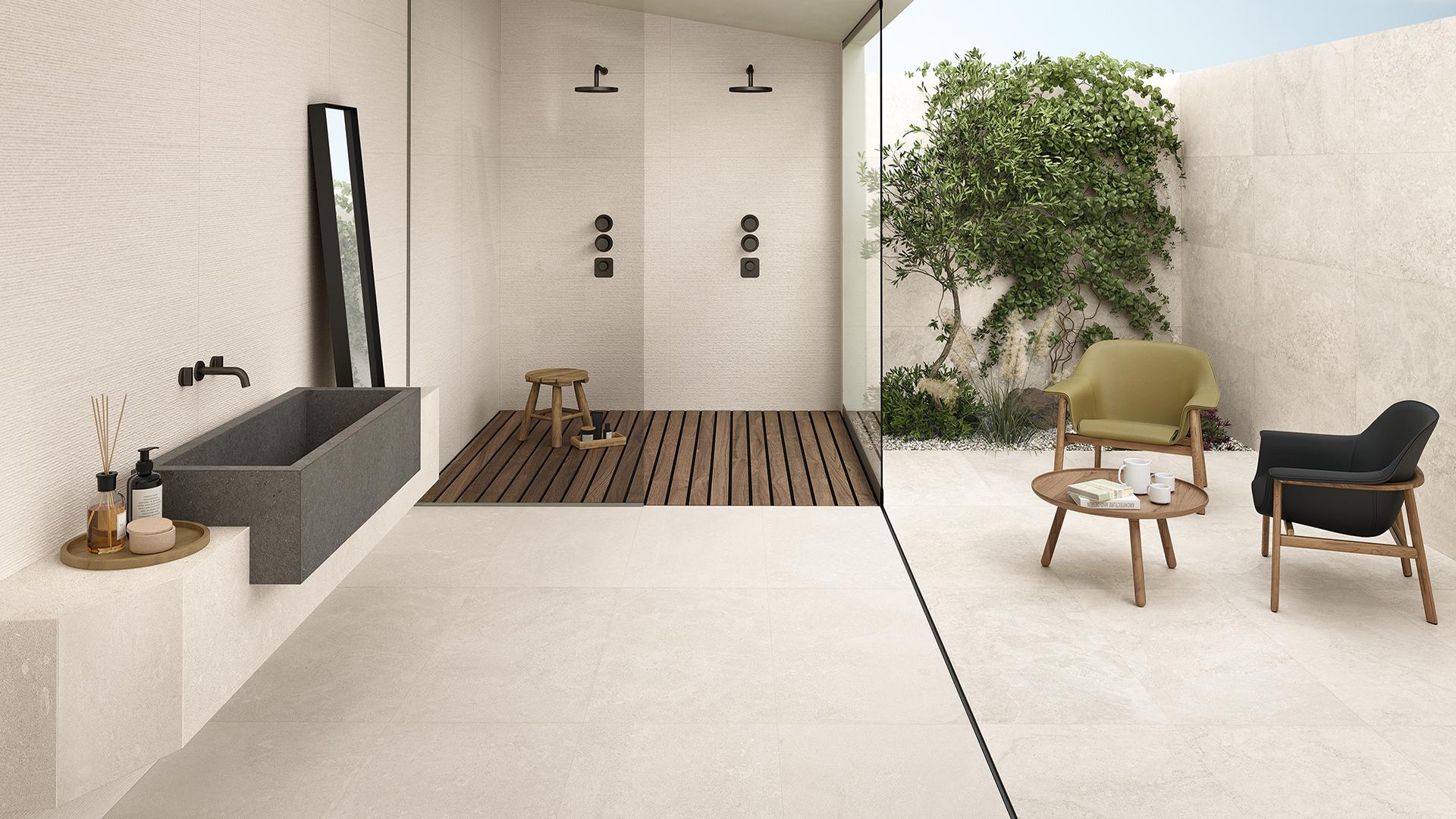 - Unempfindlich gegenüber Salz und salzhaltiger Luft: Dank seiner hervorragenden technischen Eigenschaften ist Feinsteinzeug unglaublich widerstandsfähig gegen Wetter- und Umwelteinflüsse. Das macht es zum perfekten Material für Räume, die mit Salzwasser und Sand in Berührung kommen.