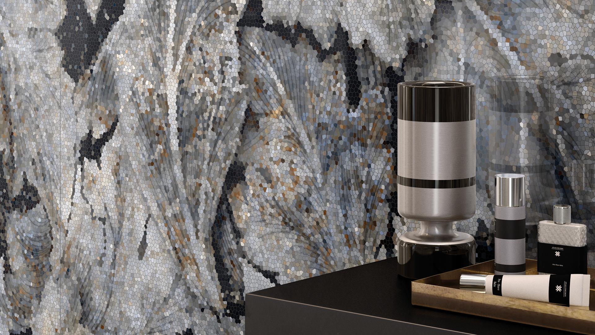 Kommen wir nun zum Dekor Acanto, dem Mosaik, das die Marmoroptik bereichert.
