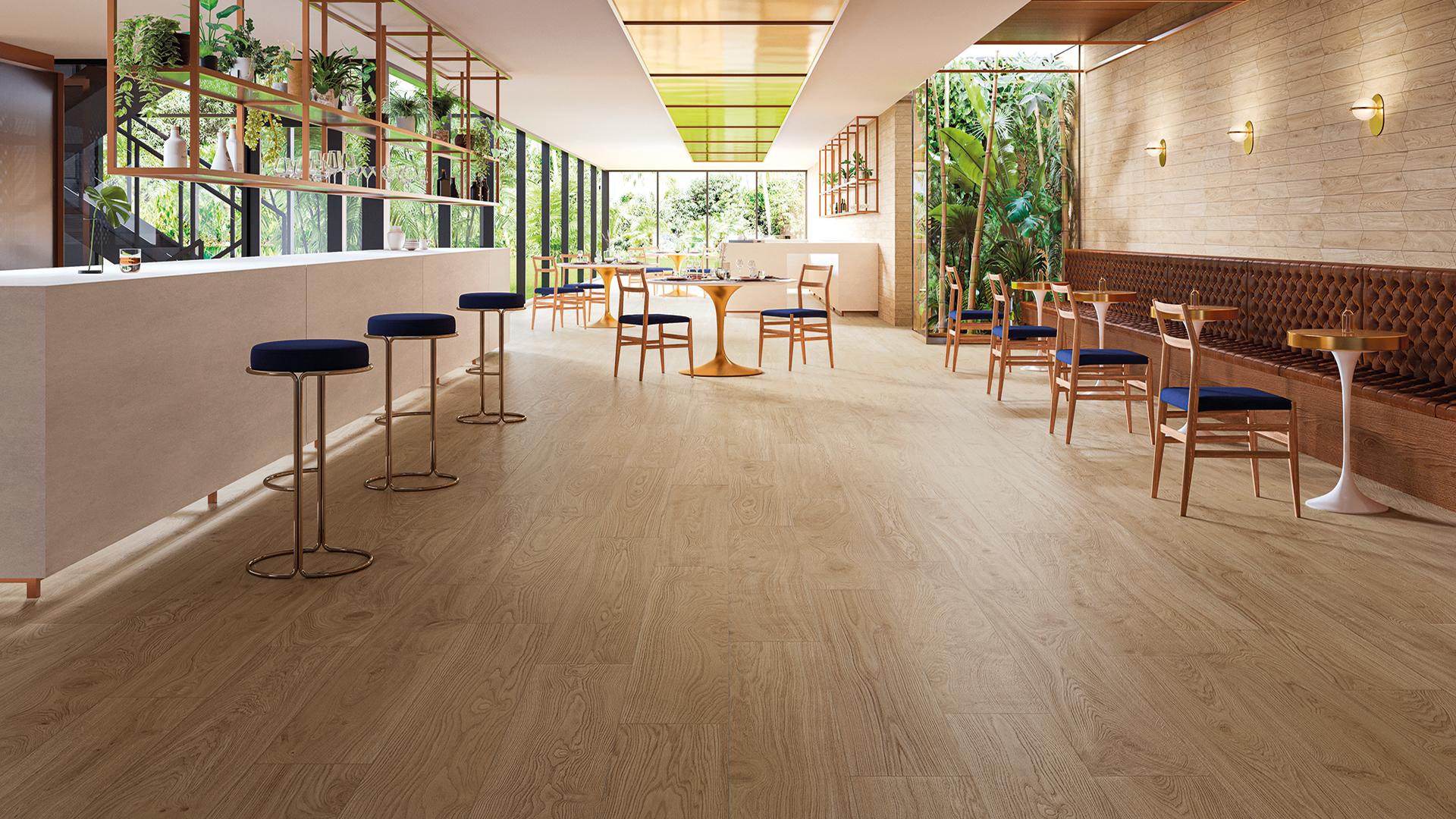Fliesen tragen dazu bei, Identität zu vermitteln, die Atmosphäre des Ambientes zu bestimmen. Ihre Optik hinterlässt einen visuellen Eindruck und beeinflusst die Art und Weise, wie der Raum wahrgenommen wird. Eine wichtige kommerzielle Entscheidung also, die ausgehend von zwei grundlegenden Qualitätsmerkmalen abzuwägen ist, auf die Emilceramica schon immer großen Wert legt: kreatives Potenzial und leistungsstarke technische Eigenschaften. Feinsteinzeug für Restaurants erfüllt zahlreiche stilistische Ansprüche und bietet durch ein vielfältiges Sortiment für jede Art von Lokal das Richtige: von der Holzoptik für ein Bistro mit bodenständiger Küche über den Industrial Look für eine Cocktailbar im Stadtzentrum bis hin zur Majolika-Optik für ein kleines Lokal mit Meerblick. Für jedes Gastronomiekonzept ein geeigneter Belag.