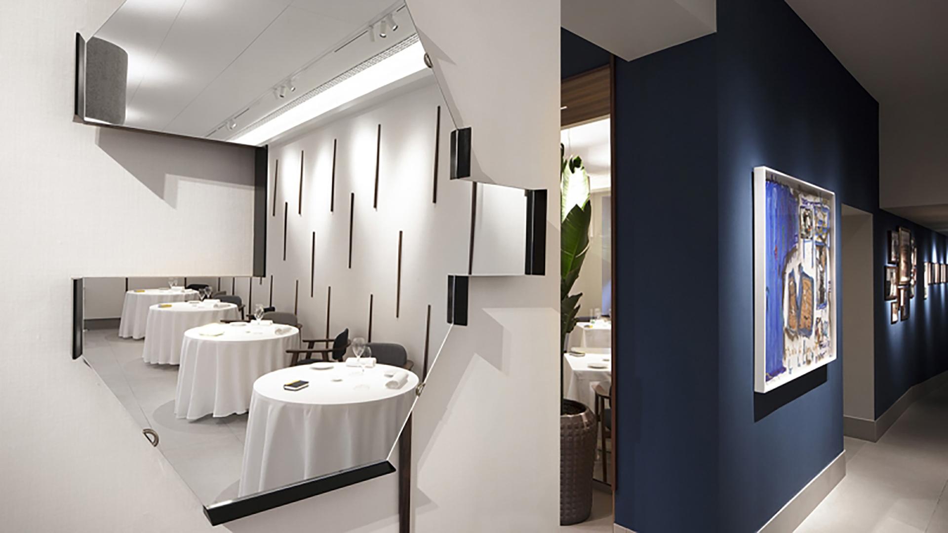 Die Wahl der Fliesen StoneTalk by Ergon und Vulcanika by Provenza hat einen Dialog zwischen den Bodenbelägen und den vertikalen Oberflächen möglich gemacht. Für die Böden wurden die Fliesen StoneTalk im Format 60x120 cm und in zwei verschiedenen Farben verwendet: White für die Essenssäle und Sand für die Wege, die zu den Zugängen und zum Theatrum führen. Die Farbe Sand wird zudem in allen Räumen für die Verkleidung der Sockel im Format 120x120 cm und für den Boden der Toiletten eingesetzt, wo man sich hinsichtlich der Wände für die Kollektion Vulcanika by Provenza in der Farbe White entschied. Der Rückgriff auf diese zwei Kollektionen hat den Räumen des Restaurants nicht nur einen Performance-Mix (Rutschfestigkeit, Korrosionsbeständigkeit, Feuerfestigkeit, einfache Verlegung, Pflege und Hygienisierung der Oberflächen), sondern auch Eleganz verliehen, die durch das minimale Design besonders gut zum Tragen kommt.
